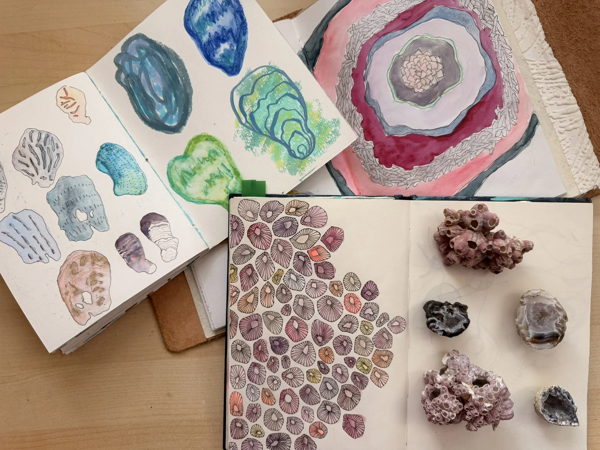 We’ll begin by exploring some fascinating facts about barnacles, bivalves and geodes. Then we’re going to spend time drawing variations of each. These drawings will be slow, mindful and relaxing and are not meant to be perfect. We’ll also work with adding color to our drawings using watercolors, markers and other water-soluble supplies. Finally, we’ll talk about how to incorporate a mindful drawing practice into your everyday life for moments of calm and quiet and also how to use the stories about these amazing creatures to comfort, empower and inspire ourselves.